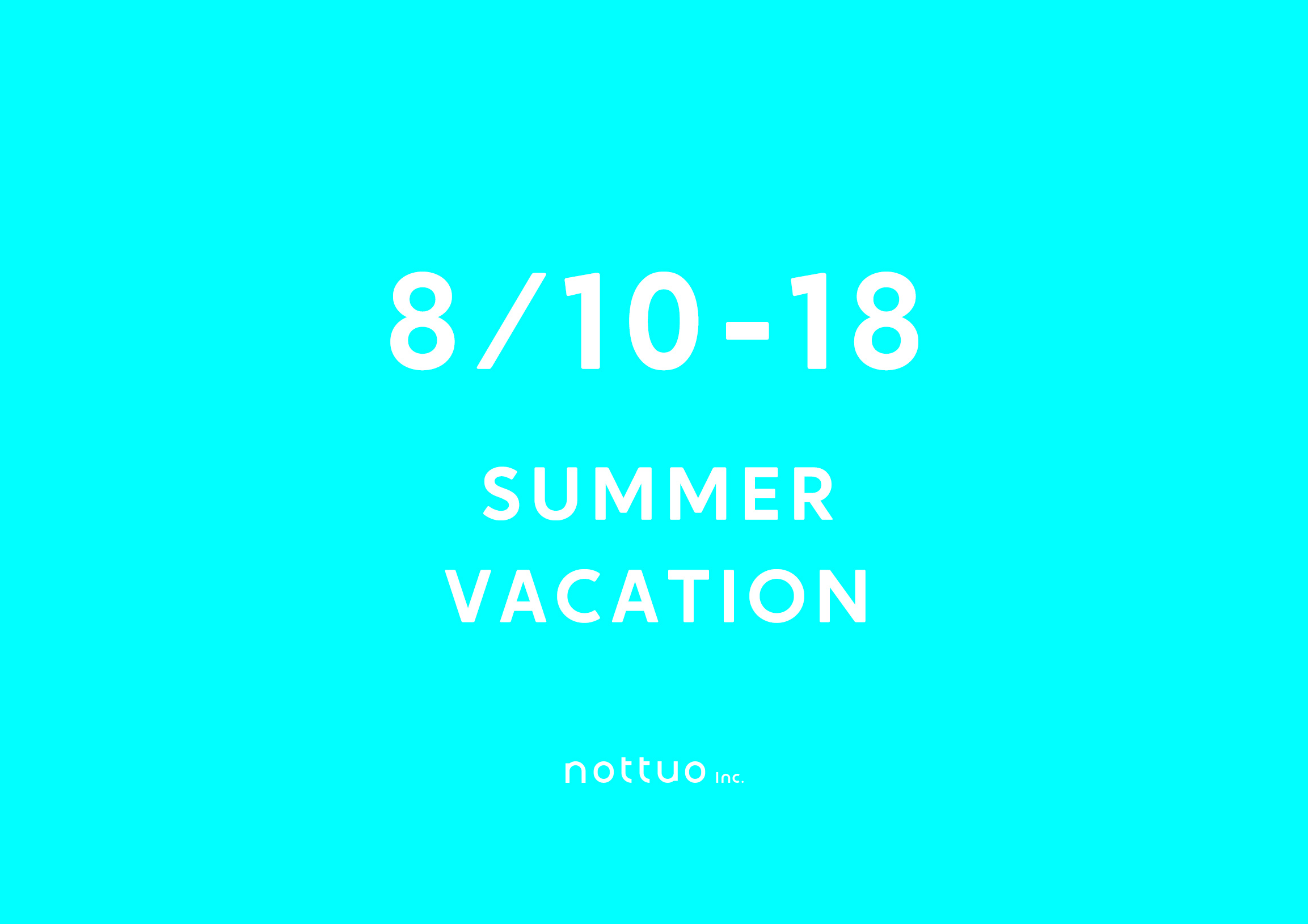 今年のnottuoの夏休みは、お盆と土日祝の繋がりがいいので、8/10〜18の期間を会社の休業日として、スタッフ一同で丸っとお休みさせていただきます。