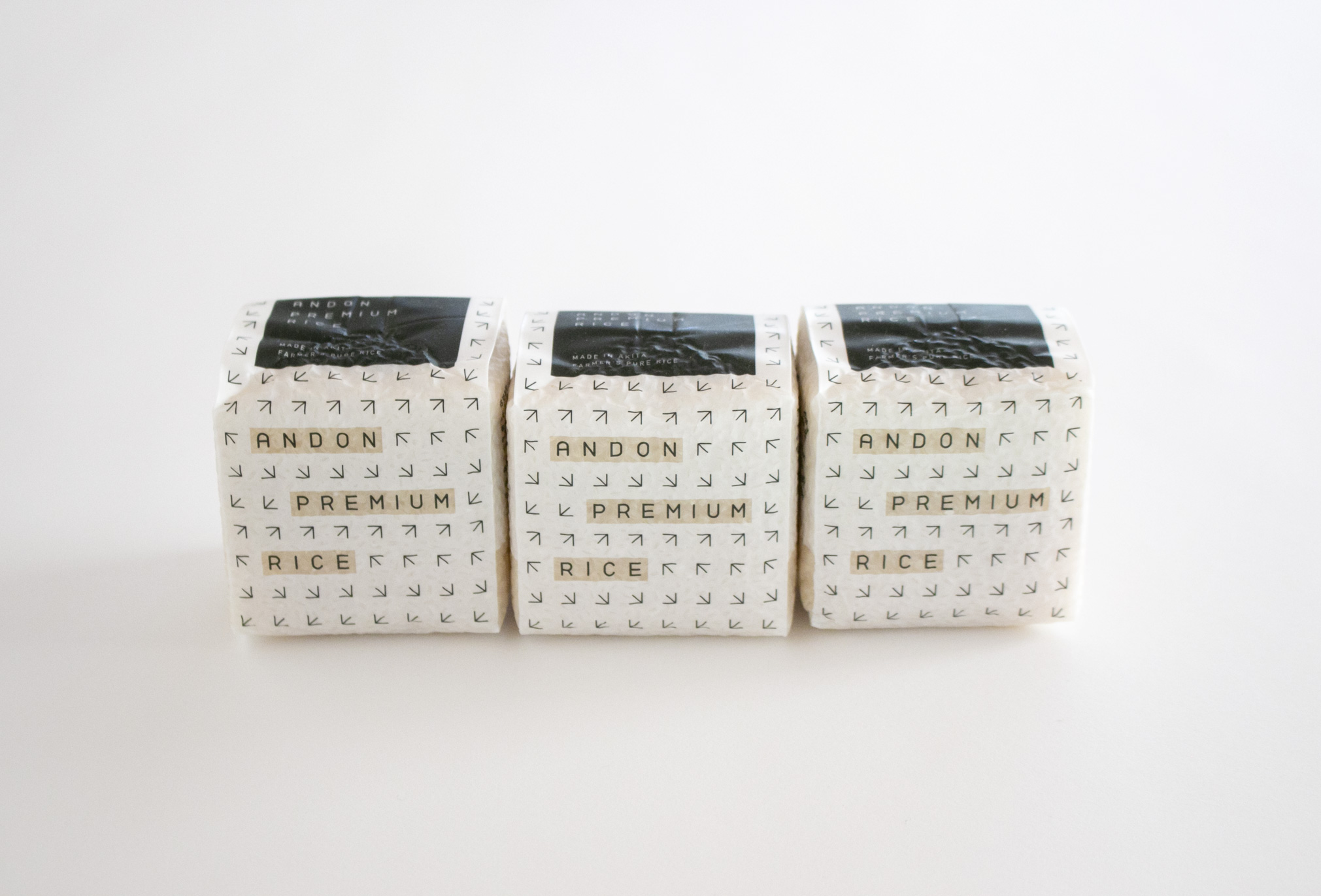 デザインでお手伝いした日本橋のおむすびスタンドANDONさんが、オリジナルのお米を商品化するということで、パッケージデザインを担当させていただきました。