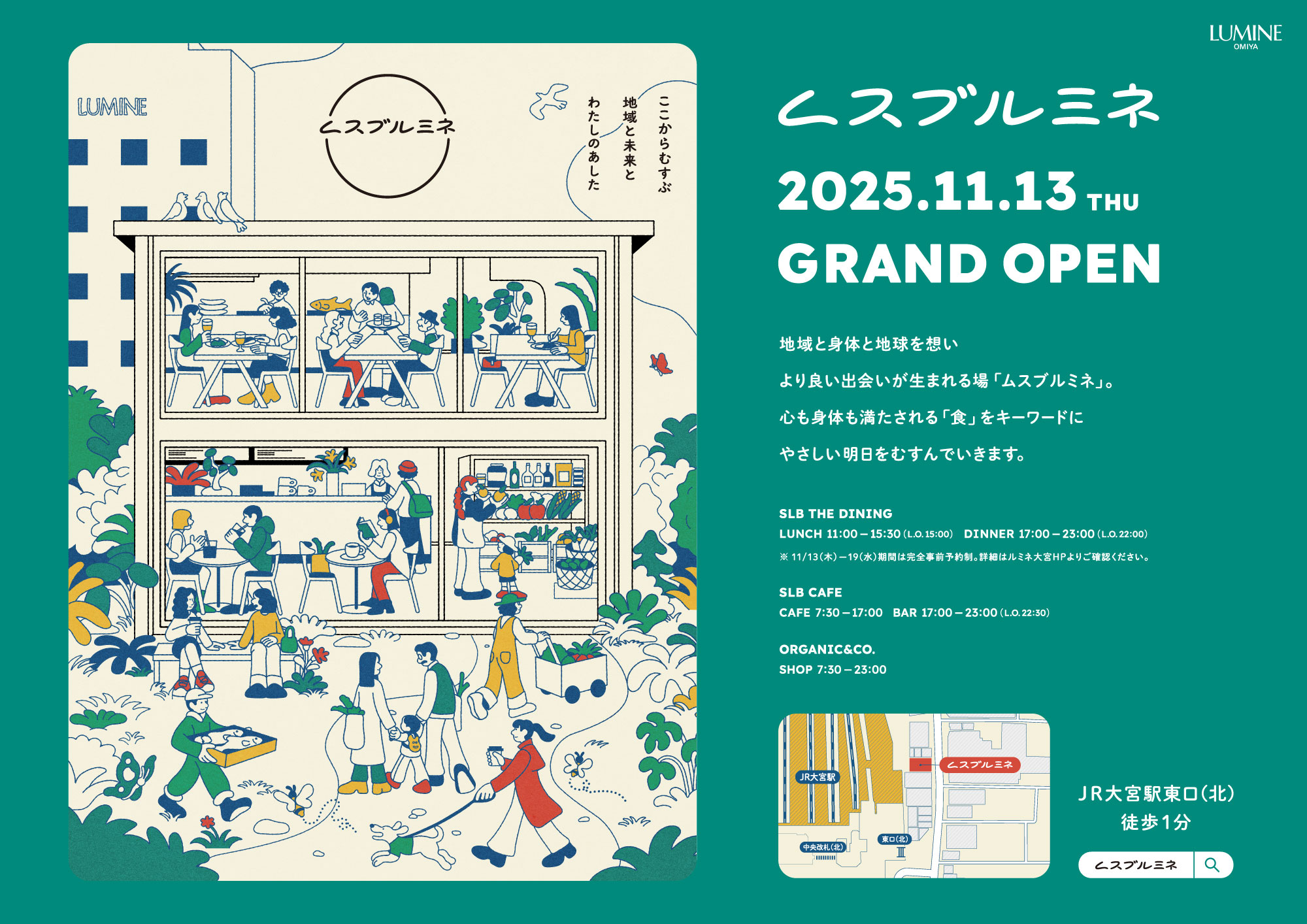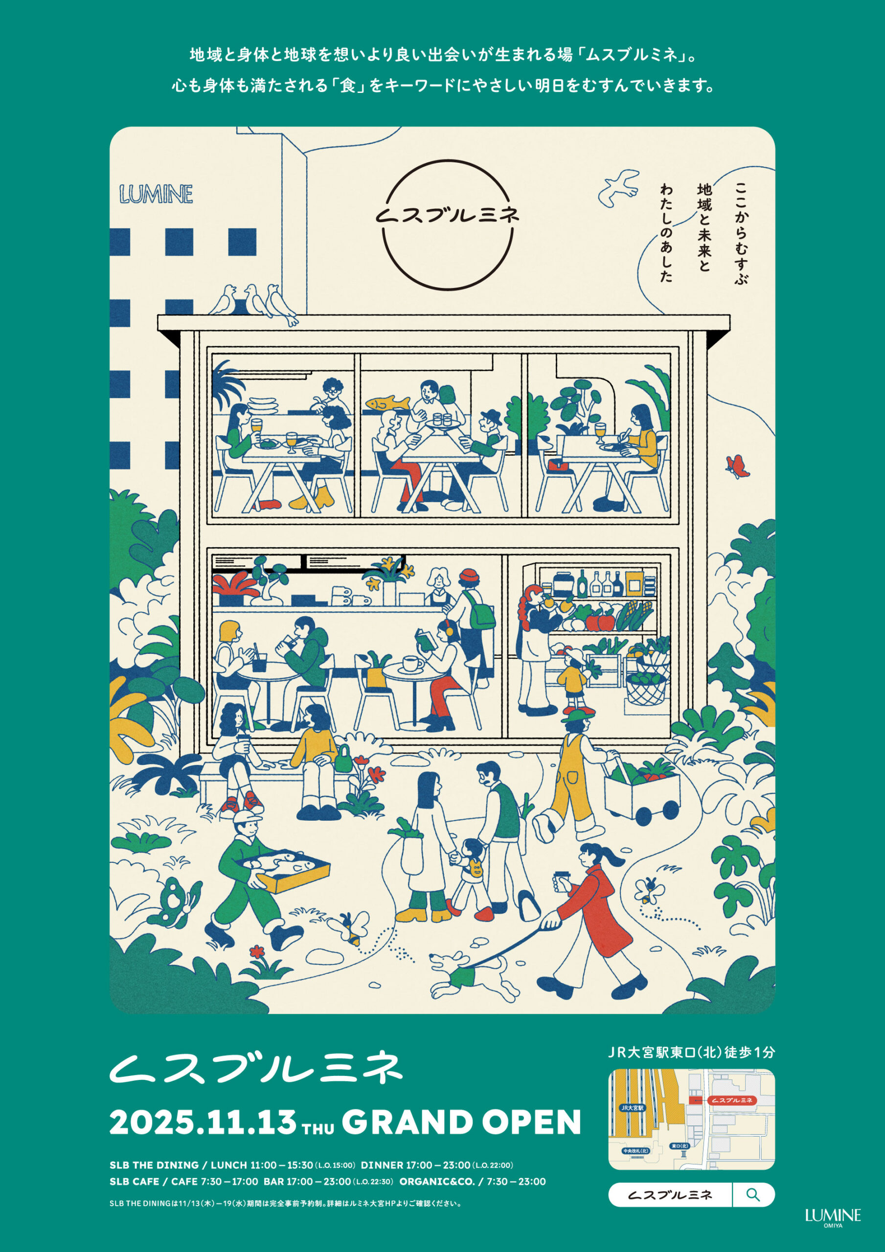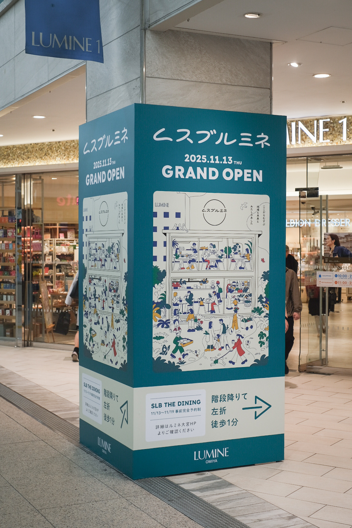 埼玉県大宮駅前にルミネさんの新業態商業施設「ムスブルミネ」の企画からBI計画、VI計画をnottuoが担当しました。