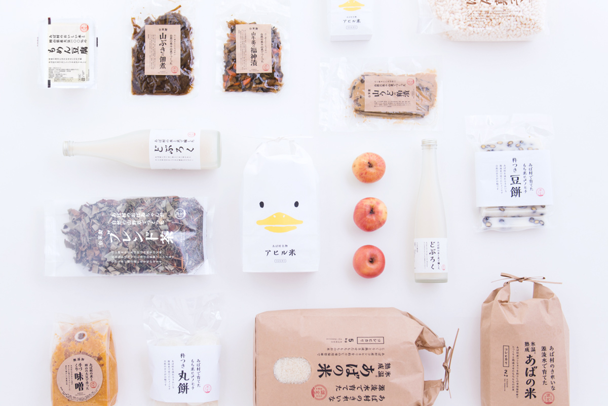 『あば村宣言』二年目の取り組みとして、この土地で作られる素材と食品の開発を行いました。「素朴な美味しさ」を伝えるデザインを心がけ、多くの人々の手にとってもらえるパッケージになりました。