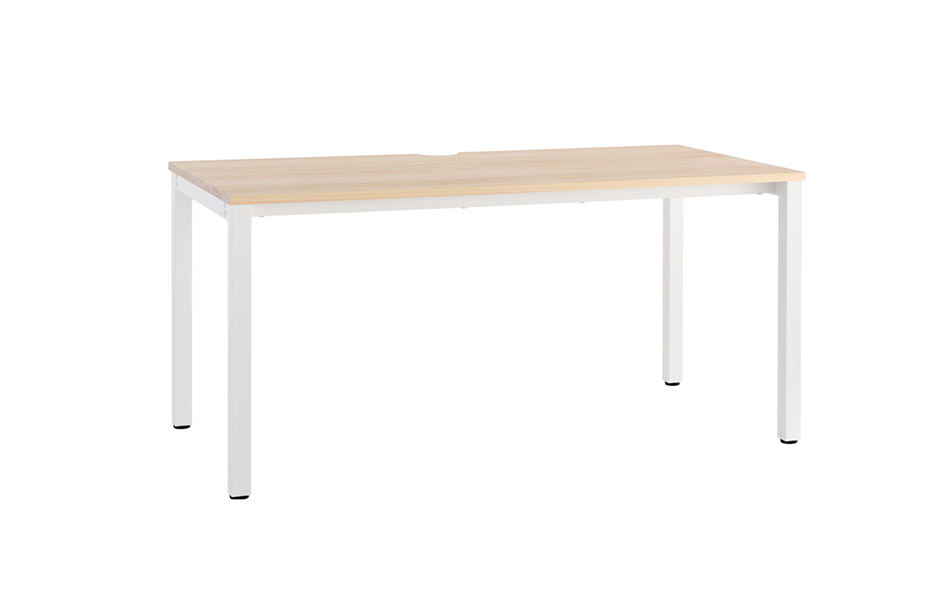 ヒノキ間伐材とスチールでつくられたワークデスク。モジュール化した天板サイズのため、オフィスの成長とともに並べ方を変えて使えるようデザインしています。