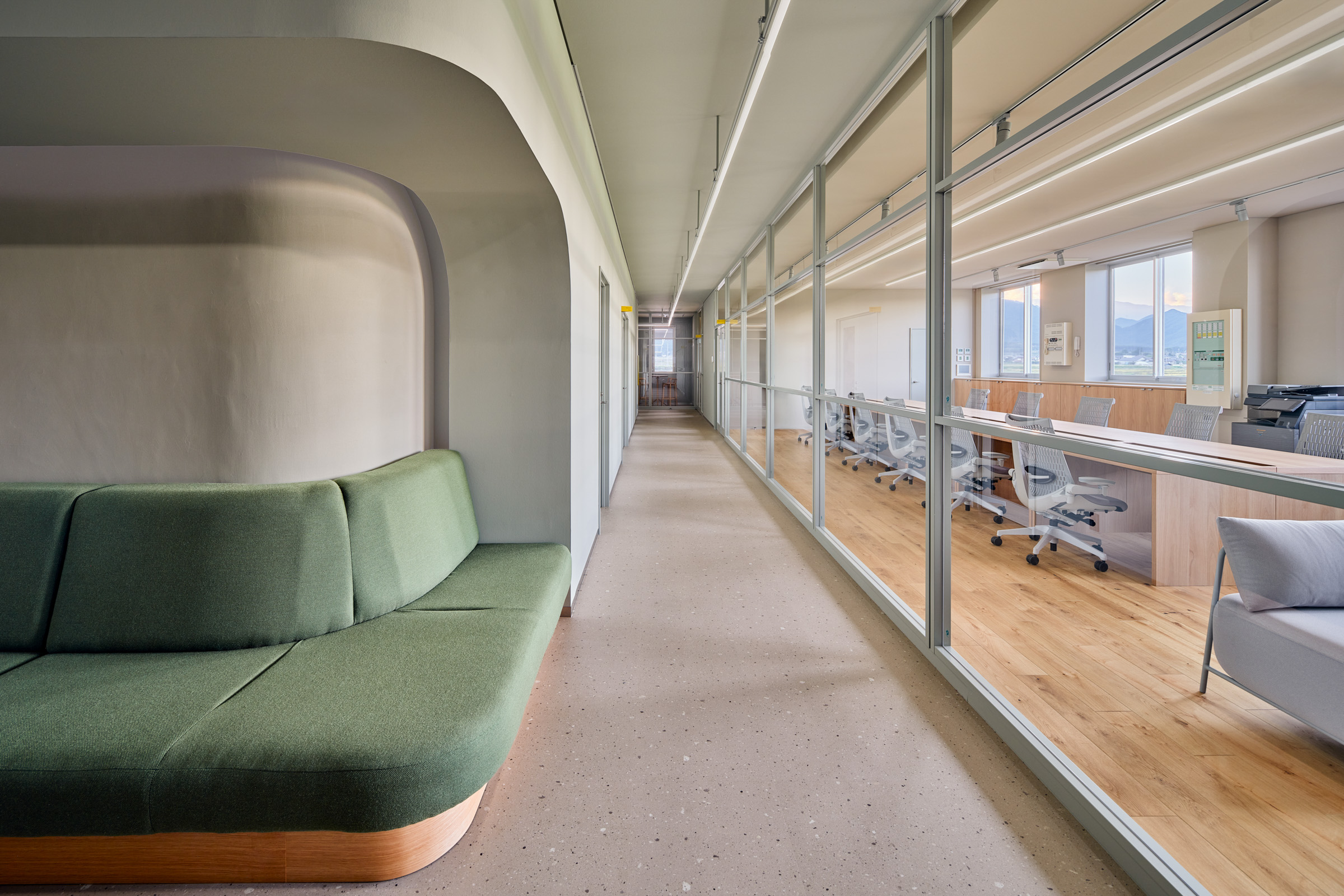 長野・安曇野でミネラルウォーターの製造販売を行っている『安曇野ミネラルウォーター』さんの新工場併設の本社オフィス設計をnottuoで担当し、オフィス空間デザイン・サインデザインをさせていただきました。