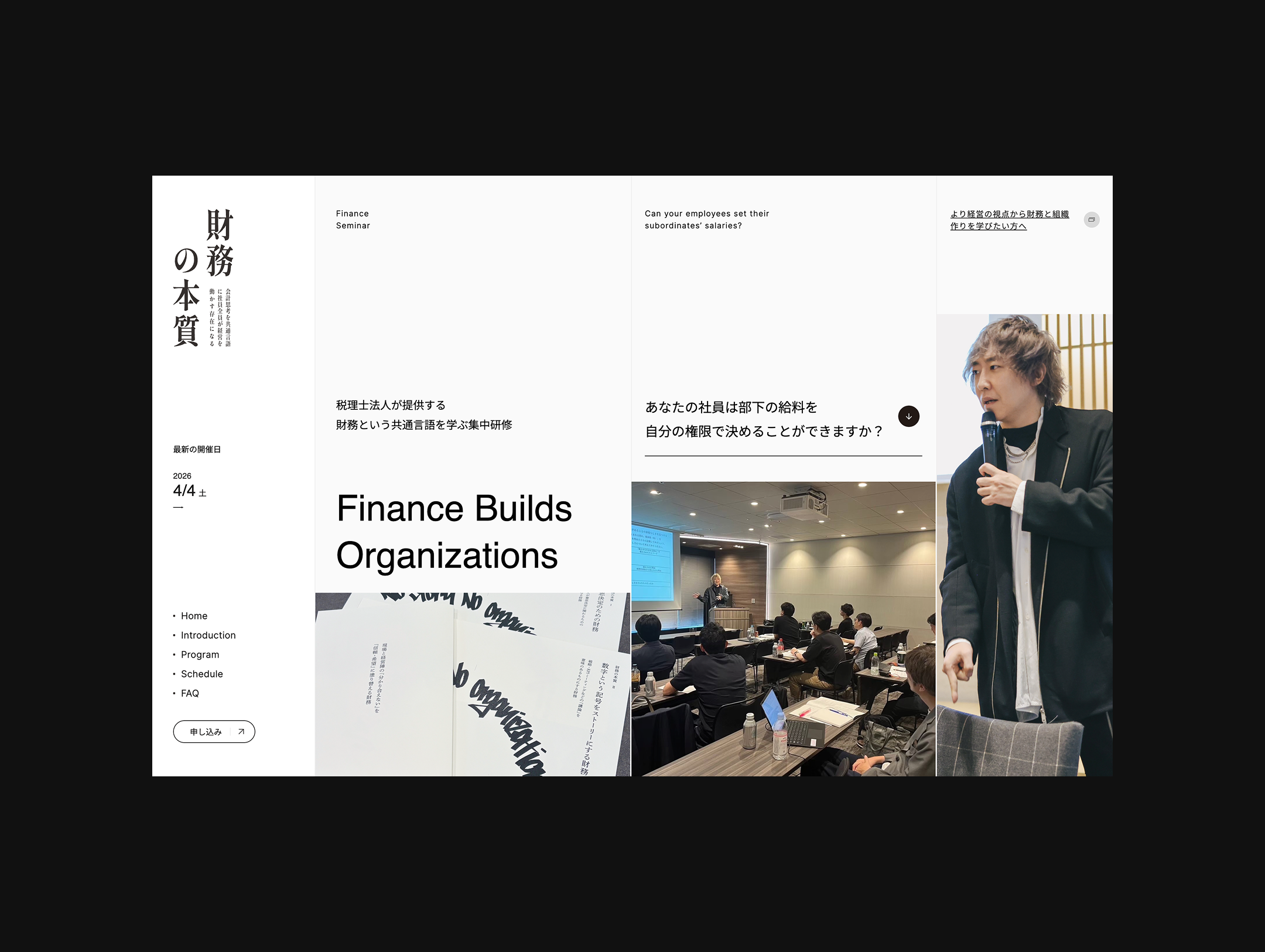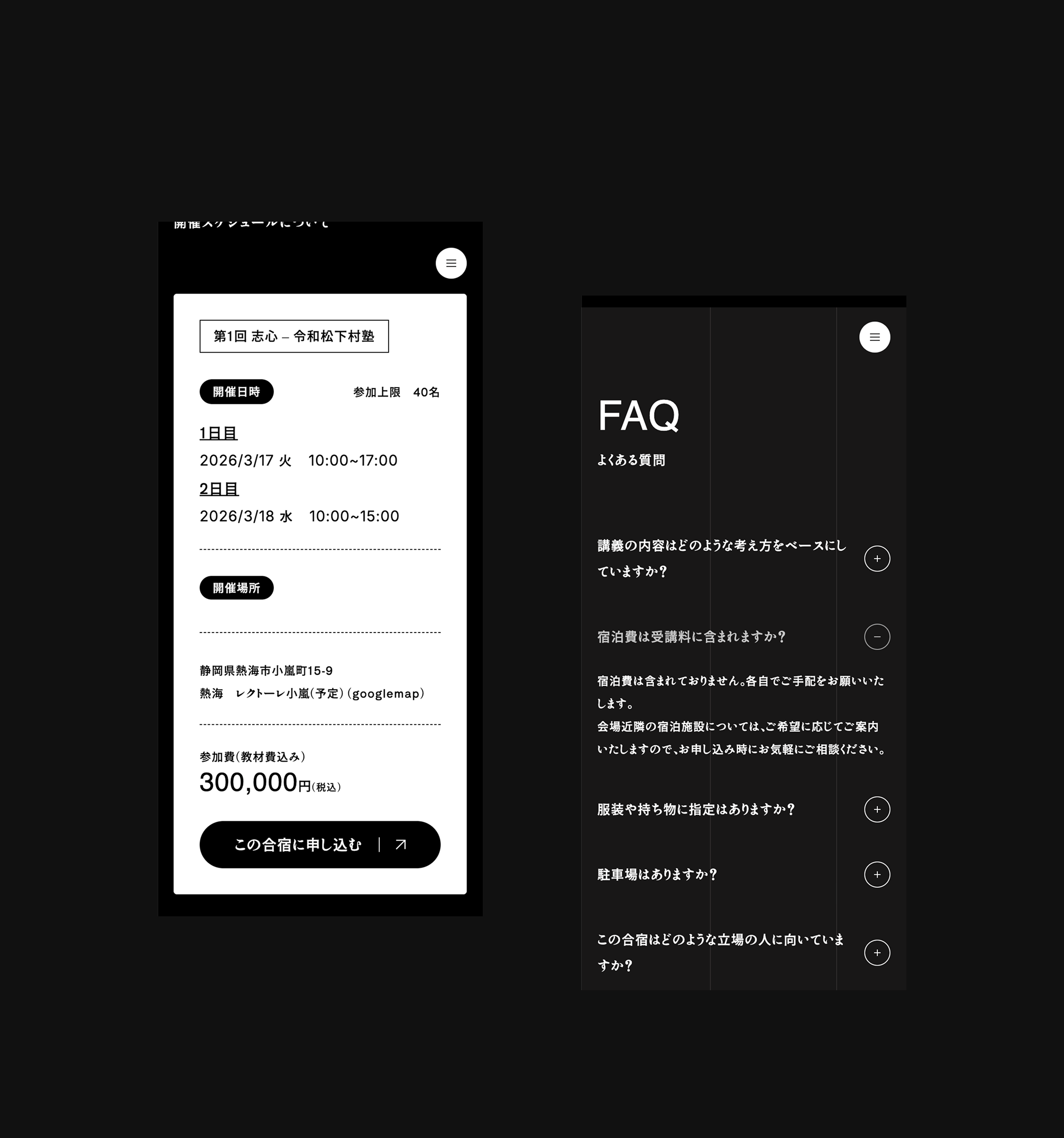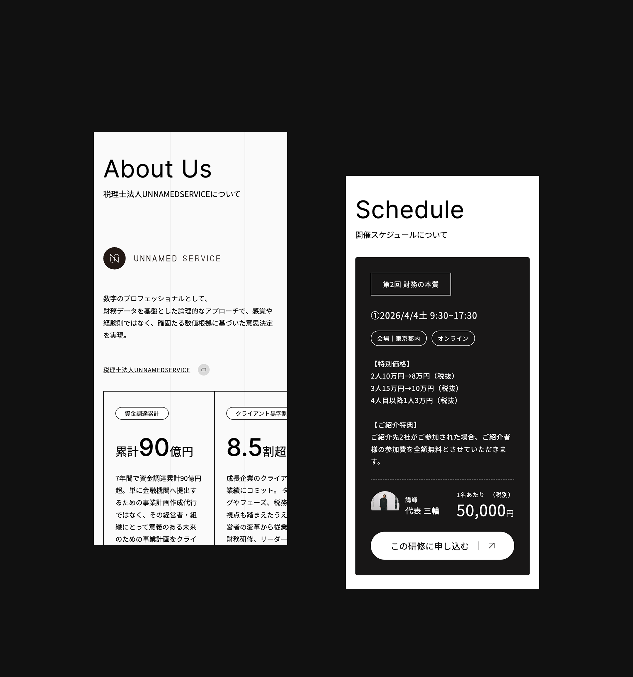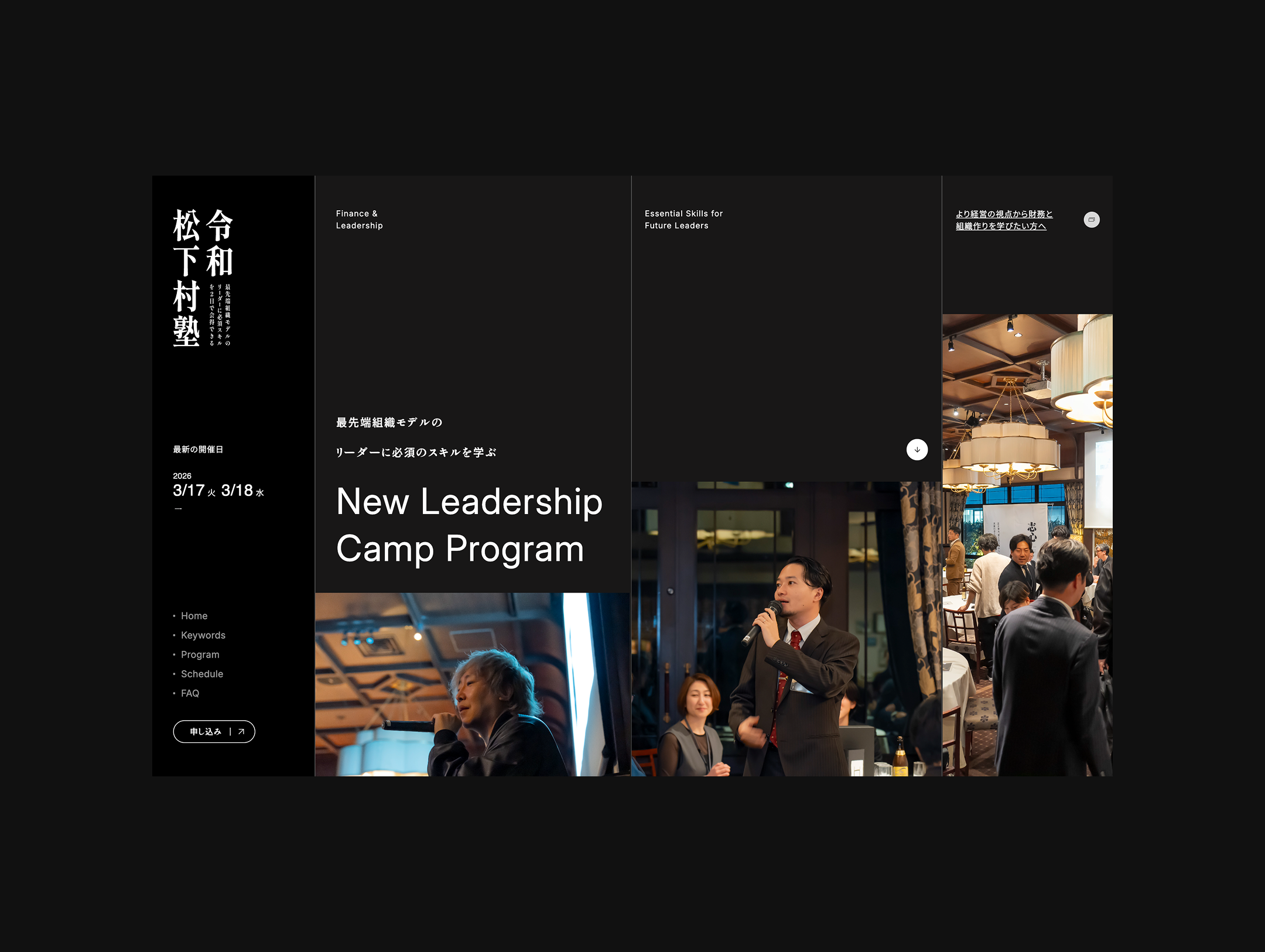 志心が提供するリーダー合宿「令和松下村塾」と、税理士法人UNNAMEDSERVICEが提供する財務研修「財務の本質」のWebサイト制作を担当しました。