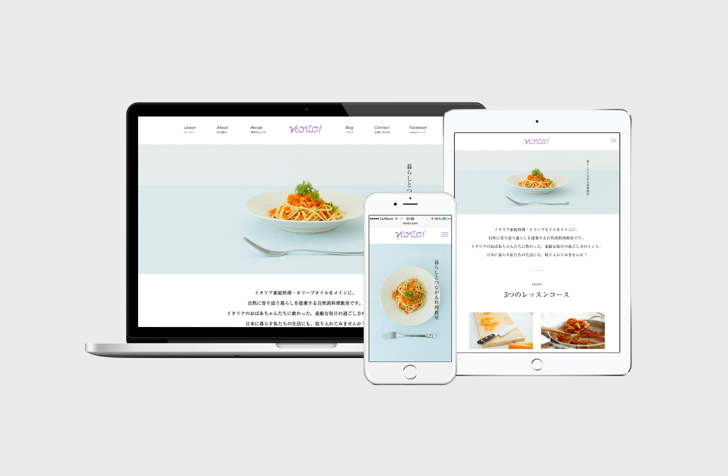 岡山駅近くのスタジオで調味料や野菜など食材にこだわり、イタリアの家庭料理をベースとした料理教室「viorto!」さんのwebサイト制作を担当させていただきました。